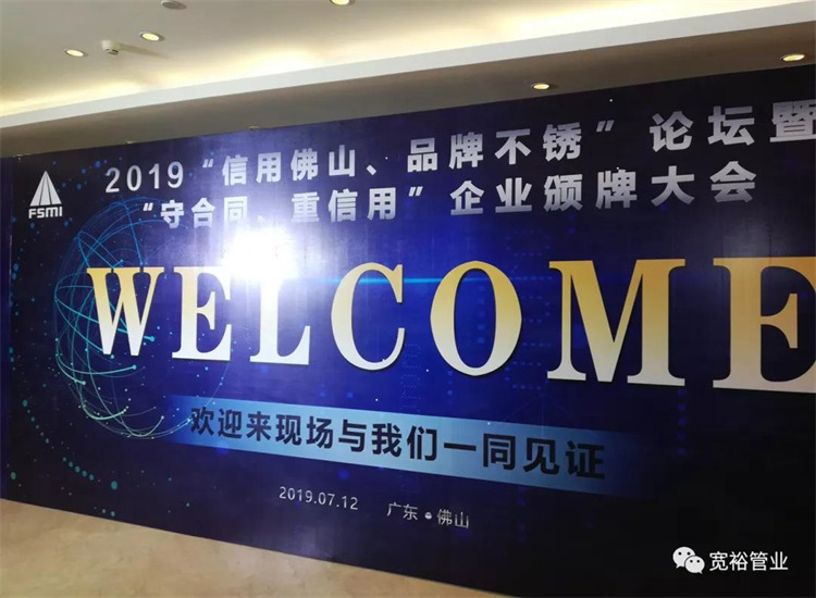 2019年7月12日,雨后天晴,佛山市寬裕不銹鋼有限公司應邀參加佛山市金屬材料行業(yè)協(xié)會主辦的2019“信用佛山、品牌不銹”論壇暨“守合同、重信用”企業(yè)頒牌大會在禪城希爾頓酒店隆重召開。