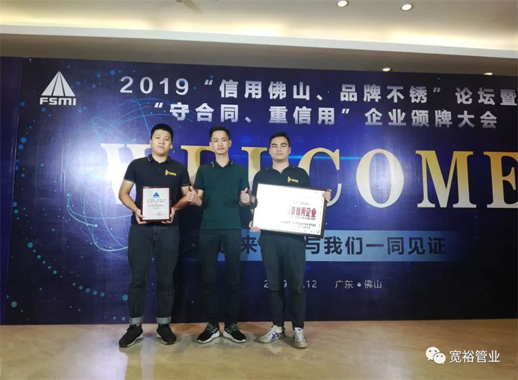 佛山寬裕管業(yè)被授予“守合同、重信用”企業(yè),佛山市金屬材料行業(yè)協(xié)會執(zhí)行會長李強先生親自頒獎。