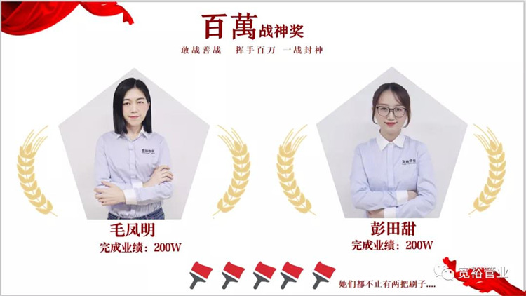 在第四季度,我們連續(xù)經(jīng)歷兩場(chǎng)硬戰(zhàn),包括10月的爭(zhēng)霸賽以及12月的收官之戰(zhàn)!能在千軍萬(wàn)馬中殺戮而出的,絕對(duì)是強(qiáng)者中的強(qiáng)者!掌聲送給我們第四季度的銷(xiāo)量冠亞季軍!期待2021年再創(chuàng)佳績(jī)!