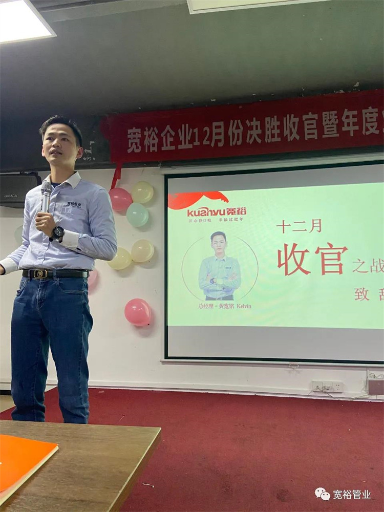 1月6日晚上,寬裕企業(yè)“快樂(lè)掙口糧,幸福過(guò)肥年”之12月收官之戰(zhàn)總結(jié)及頒獎(jiǎng)典禮在企業(yè)總部三樓會(huì)議室隆重舉行!經(jīng)過(guò)了一個(gè)月的奮戰(zhàn),經(jīng)過(guò)一次啟動(dòng)及二次啟動(dòng)的疊加推進(jìn),每天早開(kāi)會(huì)、晚總結(jié),一個(gè)一個(gè)看似微不足道的動(dòng)作,全都為了指向最終目標(biāo)的勝利實(shí)現(xiàn)!寬裕的全體戰(zhàn)士們最終以100%完成沖刺任務(wù)的彪炳戰(zhàn)績(jī)?yōu)?020年畫(huà)上了圓滿的句號(hào)!在此,小編僅代表寬裕企業(yè)感謝所有英勇奮戰(zhàn)的戰(zhàn)士們!感謝臺(tái)前幕后所有的伙伴們共同推動(dòng)了本次收官之戰(zhàn)的勝利!1月6日,我們勝利會(huì)師啦!