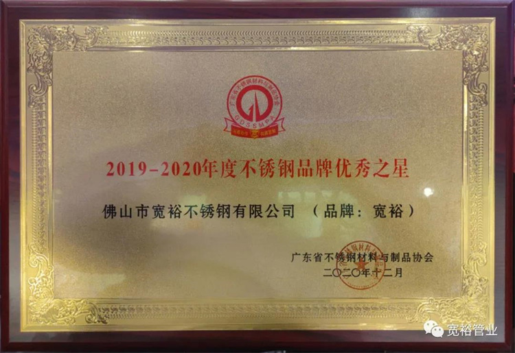 過去10年,寬裕企業(yè)載譽(yù)無數(shù)!12月23日晚再獲殊榮!其中,寬裕品牌榮獲廣東省不銹鋼材料與制品協(xié)會頒發(fā)的2019-2020不銹鋼行業(yè)品牌優(yōu)秀之星;寬裕企業(yè)榮獲“放心消費(fèi)示范點(diǎn)企業(yè)”榮譽(yù)稱號!無數(shù)榮譽(yù)的背后是全體寬裕人共同努力的成功,更有廣大客戶對我們的支持和信任!再次深表感謝!我們定必再接再厲,不斷創(chuàng)新,奮勇向前!
